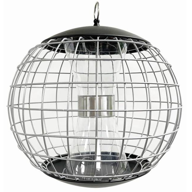 Fågelmatare som är ekorrsäker! Mataren passar bra till frön och nötter. Själva fågelmataren är omringad av en metallbur som hindrar ekorrar, duvor och skator från att nå fågelmaten. Upphängning i rostfri metall ingår.
