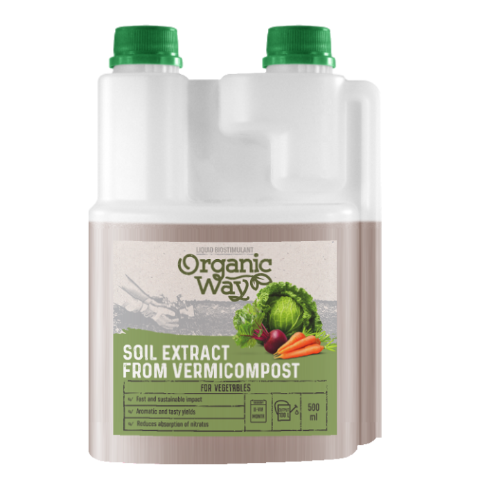 Vermicompost GRÖNSAKER är ett flytande preparat som innehåller organiska ämnen som ger jorden ökad fertilitet och ökar den biologiska aktiviteten i jorden. Detta tillsammans med humusämnena bidrar till att rötternas näringsintag blir bättre, groningen från frö blir snabbare och rotningen mer effektiv. Motståndskraften blir även bättre mot stress mot torka, omplanteringar och sjukdomar.