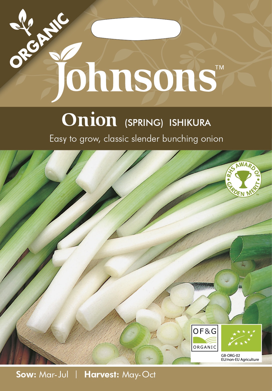 Ekologiskt frö. Långa, tunna stjälkar med mild löksmak. Snabbväxande blast. Kan skördas i många olika stadier och därmed stå länge i landet. Ät gärna både lökbasen och den smakrika blasten. God i sallader och i asiatiska maträtter. Överskott kan frysas. Växer bra i kruka.