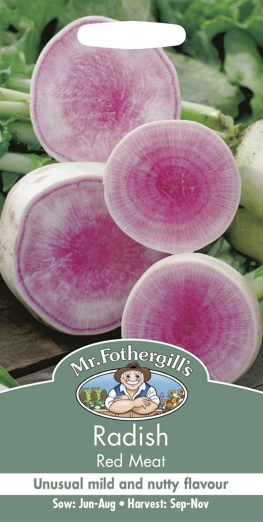 En kinesisk rädisa som i Kina kallas ’Beauty Heart’ på grund av dess vackra rosa färg. Smaken är lätt nötaktig. Kan användas råå, tillagas på samma sätt som en rova eller friteras som pommes. Nyttig och innehåller mycket C-vitamin. Upprepa gärna sådden varannan vecka för att ha jämn tillgång på späda rädisor. Trivs bäst i lucker jord. Jämn fuktighet är viktigt. Täck sådden med fiberduk för att undvika tidiga insektsangrepp.