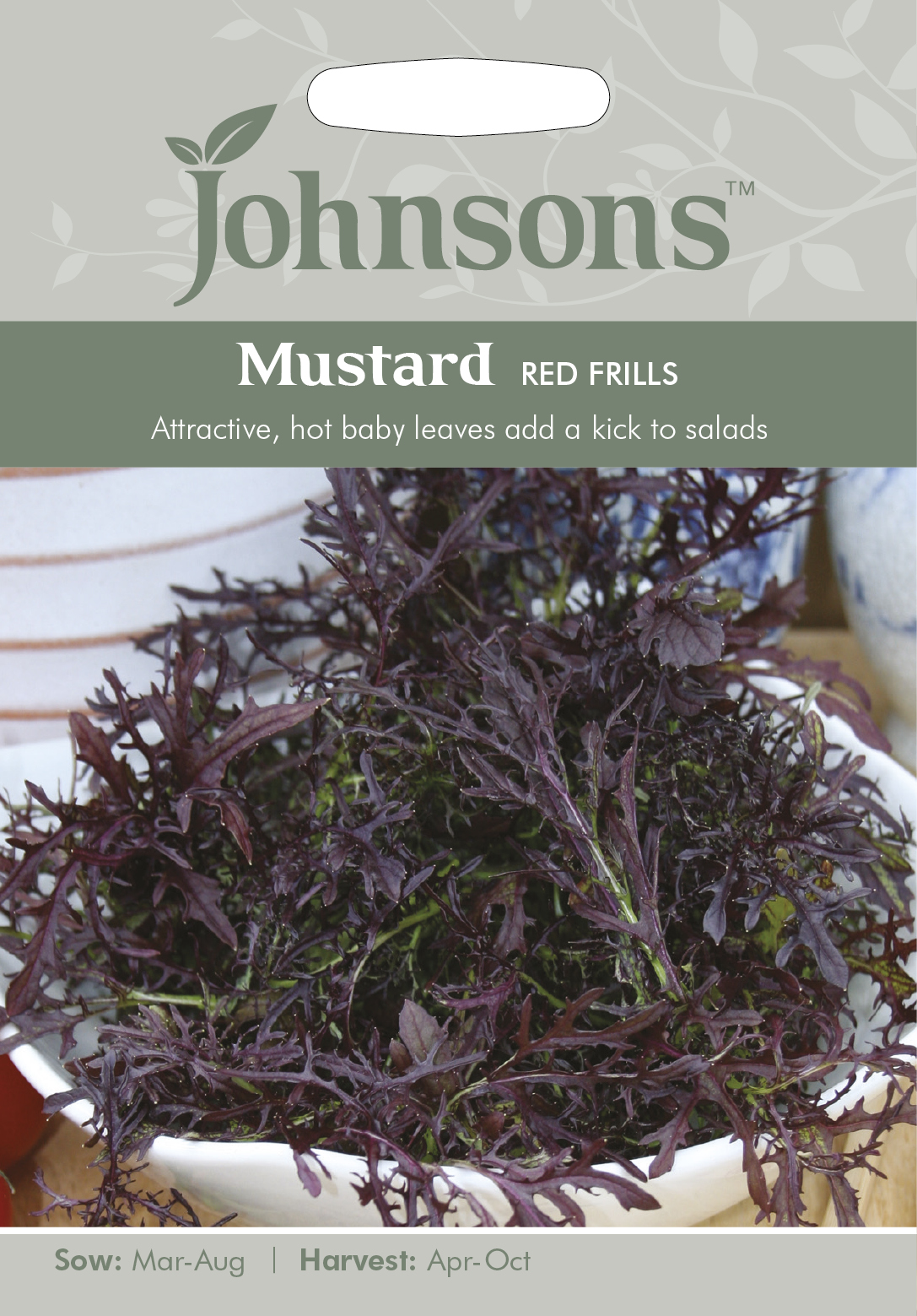 Enkel att odla och har en fantastisk växtkraft! Dekorativ med vackra, mörkt röda, finflikiga blad. Unga smakar friskt av senap och är goda i sallader. Får bladen växa till sig får de skarpare smak och kan användas i wok eller fräsas i stekpanna. Fröna används till dijonsenap. Kan odlas såväl på friland som i kruka. Under högsommaren går plantan lätt i blom – nyp av eventuella blomstänglar. För jämn tillgång av fräscha blad bör sådden upprepas med några veckors mellanrum. Täck med fiberduk för att förhindra angrepp av skadeinsekter. Skörda efter hand när bladen är ca 7 cm långa. Köldtålig.