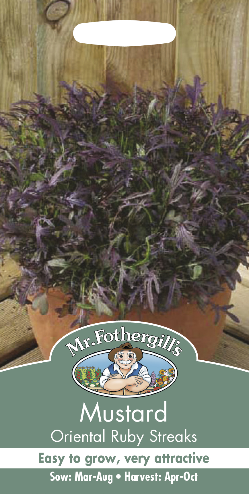 Lättodlad med fantastisk växtkraft! Dekorativ med vackra röda och flikiga blad. Unga smakar friskt av senap och är goda i sallader. Får bladen växa till sig får de skarpare smak och kan användas i wok eller fräsas i stekpanna. Kan odlas såväl på friland som i kruka. Under högsommaren går plantan lätt i blom – nyp av eventuella blomstänglar. För jämn tillgång av fräscha blad bör sådden upprepas med några veckors mellanrum. Täck med fiberduk för att förhindra angrepp av skadeinsekter. Skörda efter hand när bladen är ca 7 cm långa. Köldtålig.