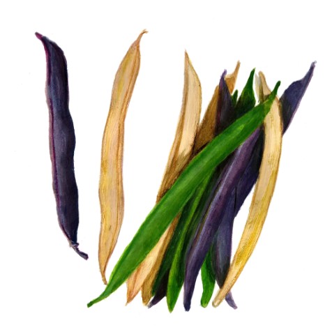 Det här är min våta bön-dröm, att kunna odla tre sorters störbönor med lila, gula och gröna baljor mot en vacker spaljé (som fröodlare måste vi ju separera sorterna!) Tänk att få plocka dessa delikata och krispiga baljor i olika vackra färger, ta med in i köket och en snabb tillagning senare äta dem med bara lite salt och smör på toppen. Mer än så behövs inte för att det ska vara en bra sommar. Om du vill att sommaren ska följa med in i hösten och vintern kan du mjölksyra eller frysa baljorna.